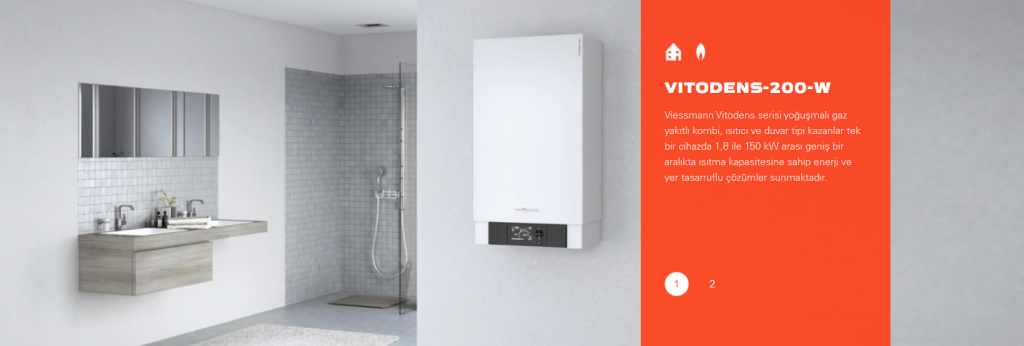 Vitodens 200-W gaz yakıtlı yoğuşmalı kombi, oturma mekanlarına kolayca entegre edilebilir. Küçük boyutları sayesinde mutfaklarda tezgah üstü dolapları hizasına ya da çamaşır yıkama veya kurutma makinesi üzerindeki boşluklara sorunsuz bir şekilde yerleştirilebilir. 150 kW’a kadar ısıtma kapasitelerine sahip duvar tipi yoğuşmalı kazanlar ve kaskad sistemler ise merkezi sistem uygulamaları için tasarlanmıştır.